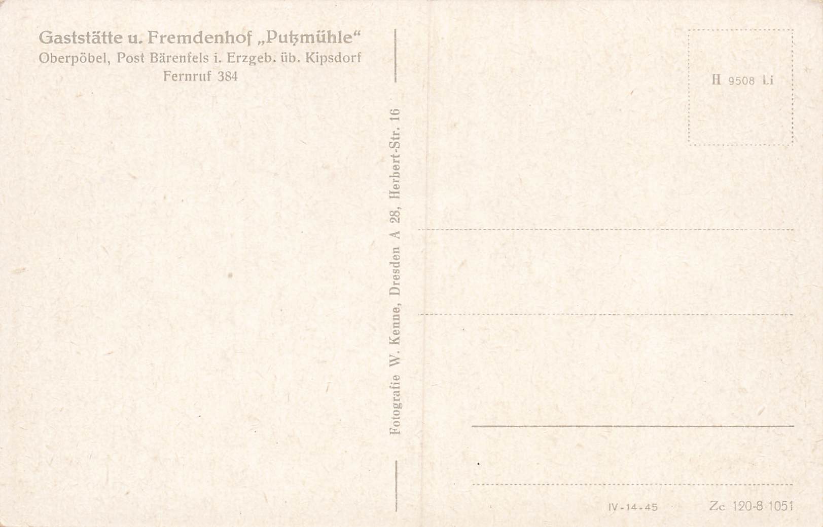 01744 Pöbeltal Dippoldiswalde Gasthof Putzmühle * um 1950
