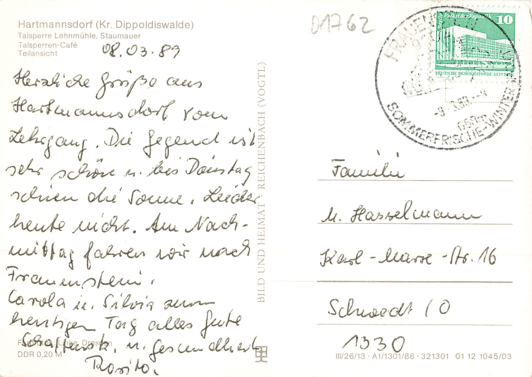 01762 Hartmannsdorf Reichenau Erzgebirge o 1989