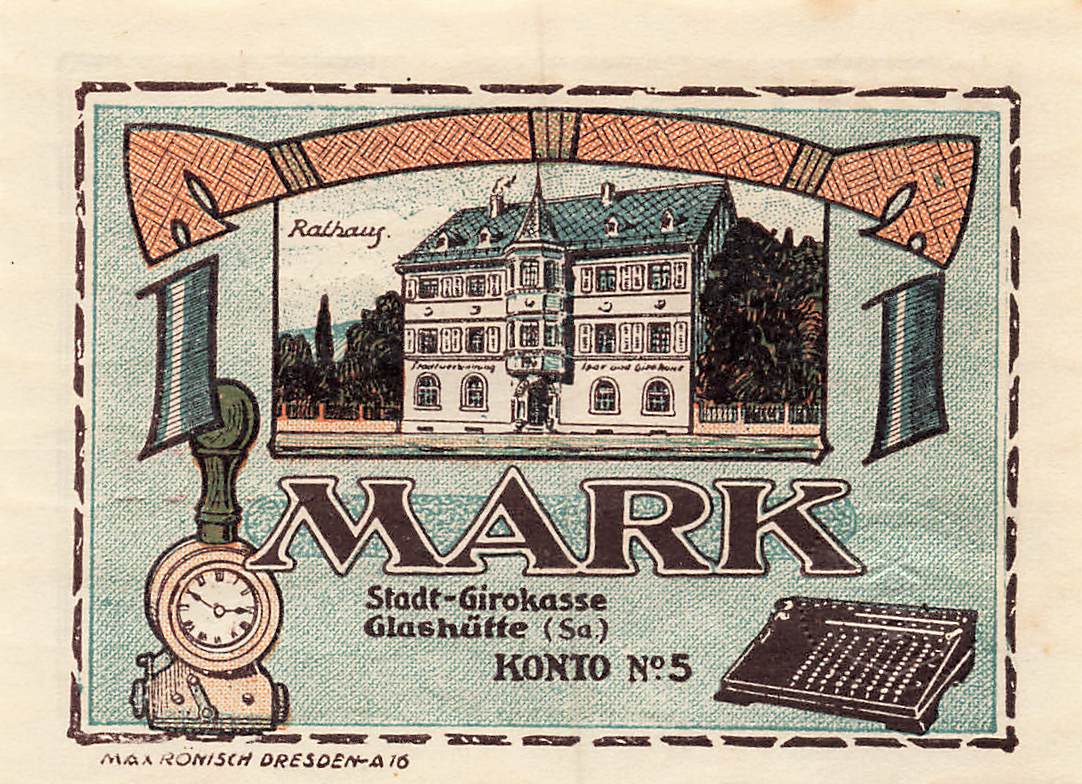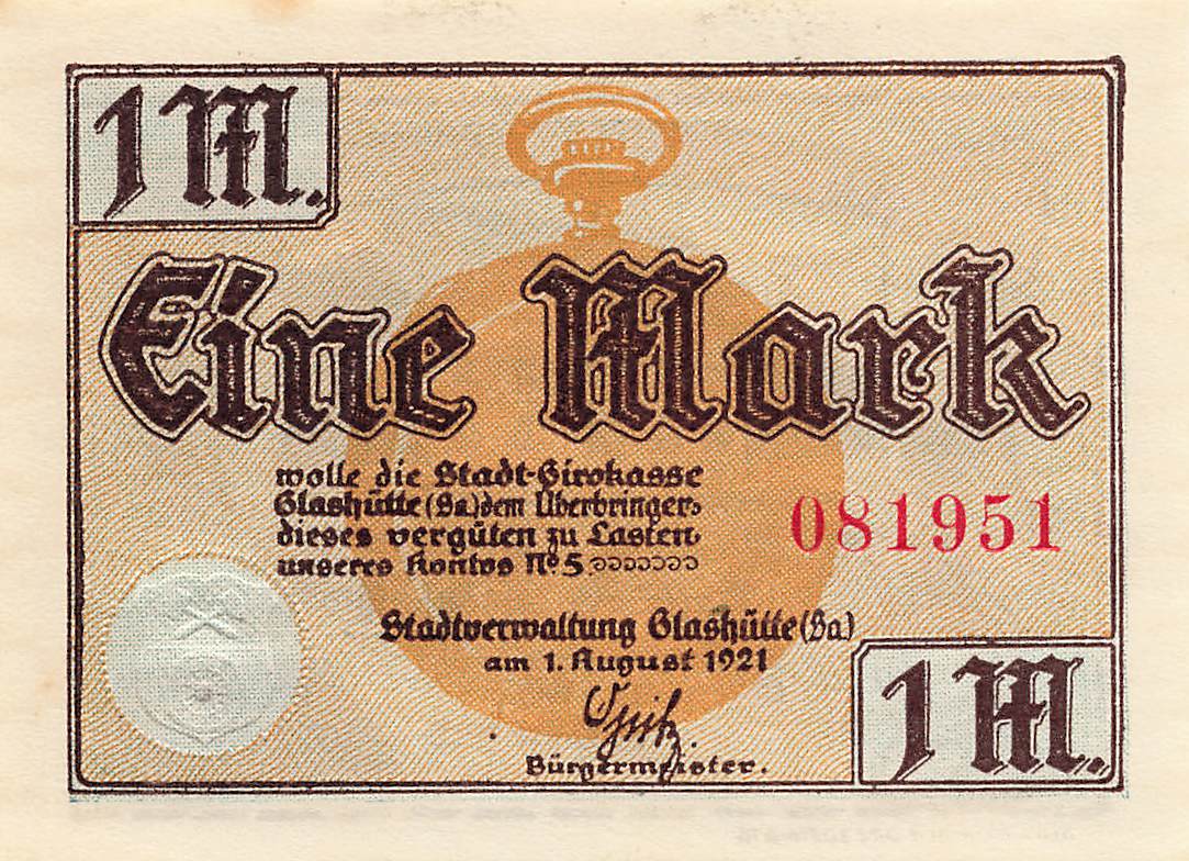 01768 Glashütte Sachsen Notgeldschein 1 Mark 1921