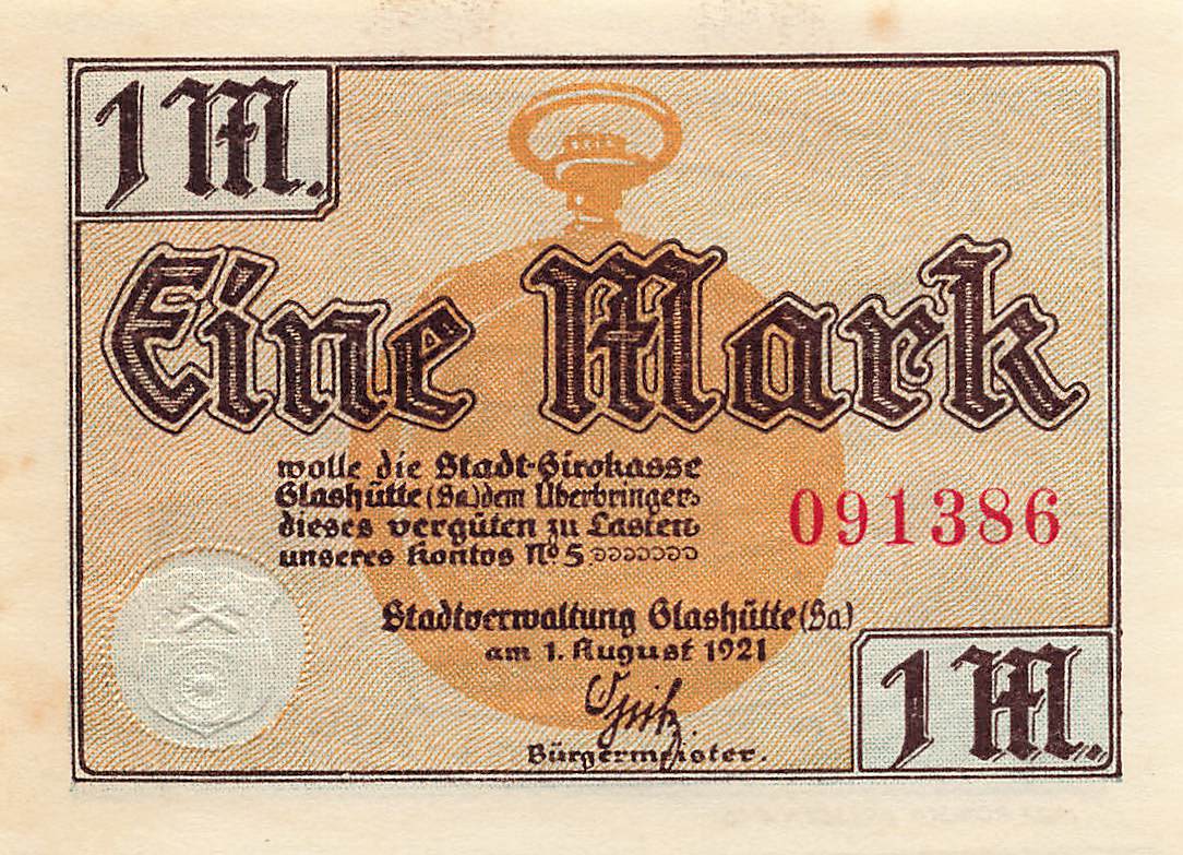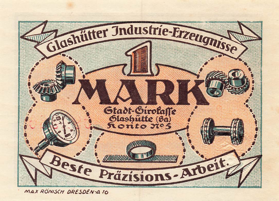 01768 Glashütte Sachsen Notgeldschein 1 Mark 1921