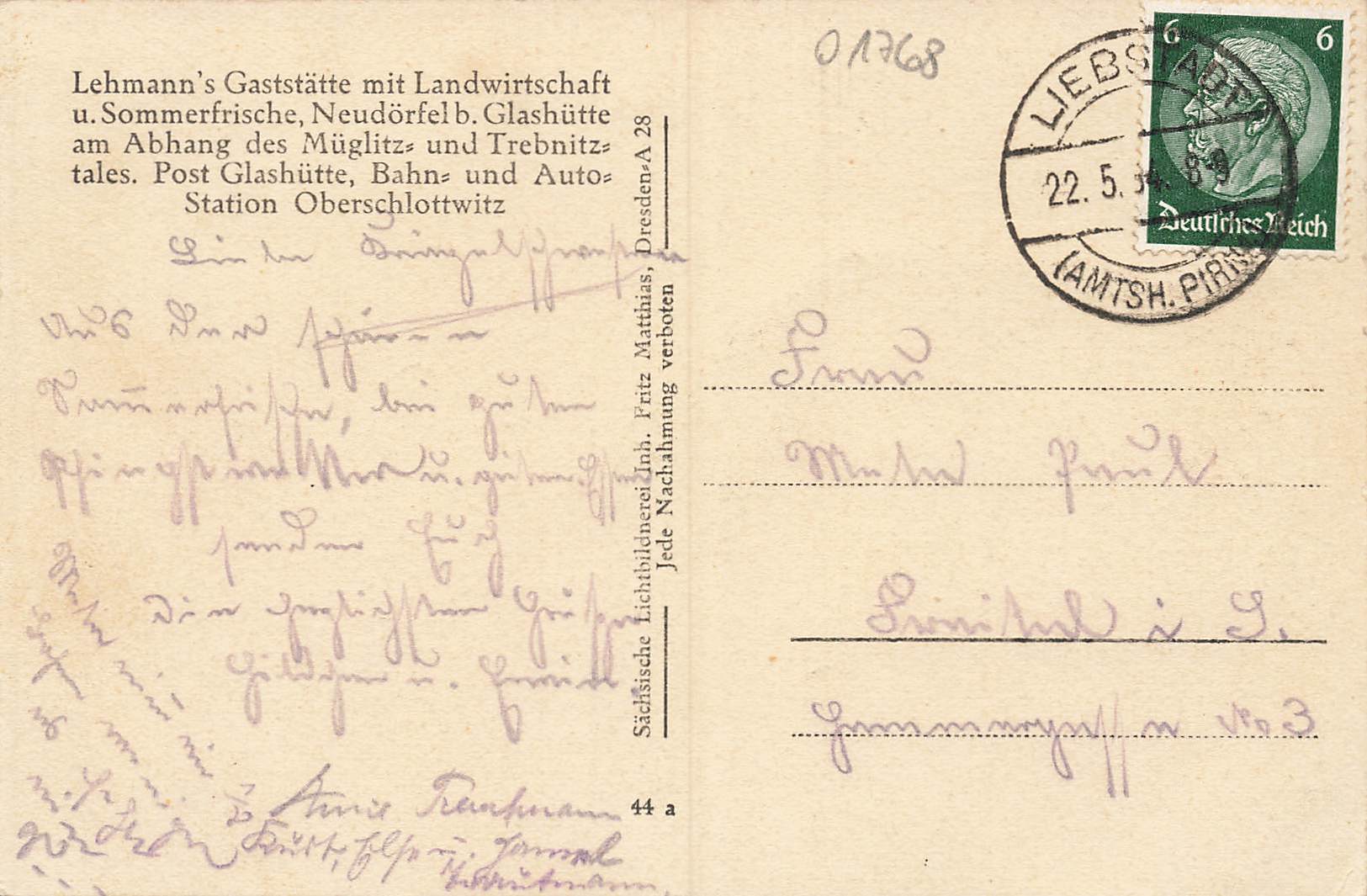 01768 Neudörfel Glashütte Sachsen o 1934