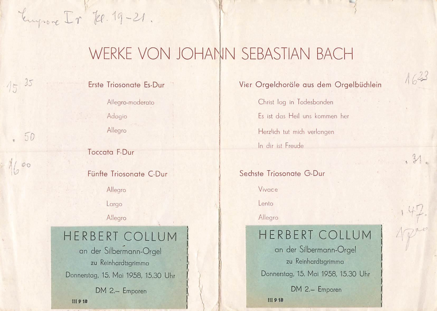 01768 Reinhardsgrimma Glashütte Orgelkonzert Silbermannorgel 1958