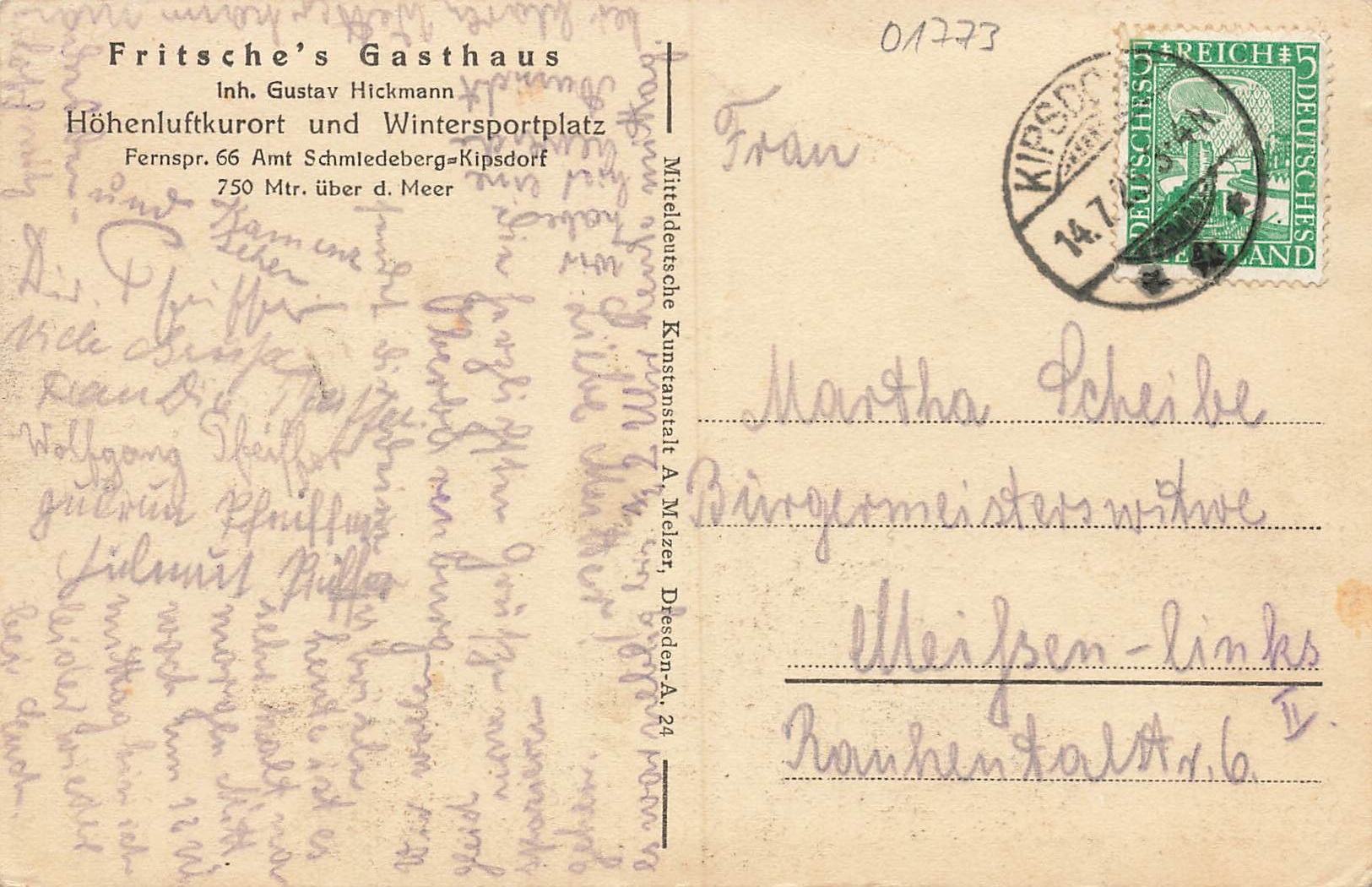 01773 Oberbärenburg Erzgebirge Fritsches Gasthaus o 1929