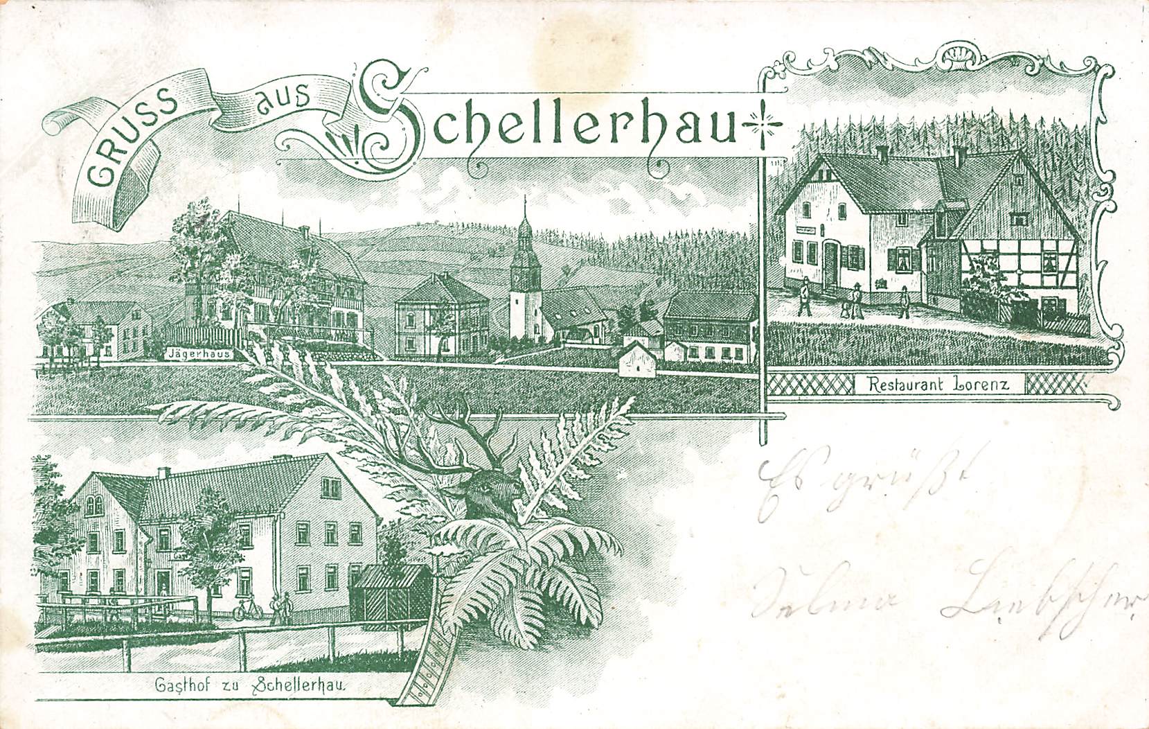 01773 Schellerhau Erzgebirge Restaurant Lorenz und Gasthof Litho Bahnpost Hainsberg-Kipsdorf Zug 2907 1901