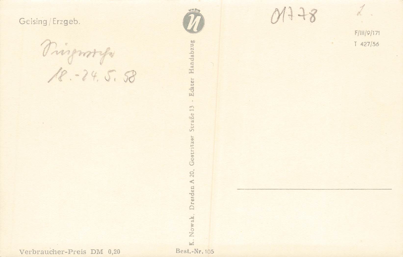01778 Geising Erzgebirge * 1958
