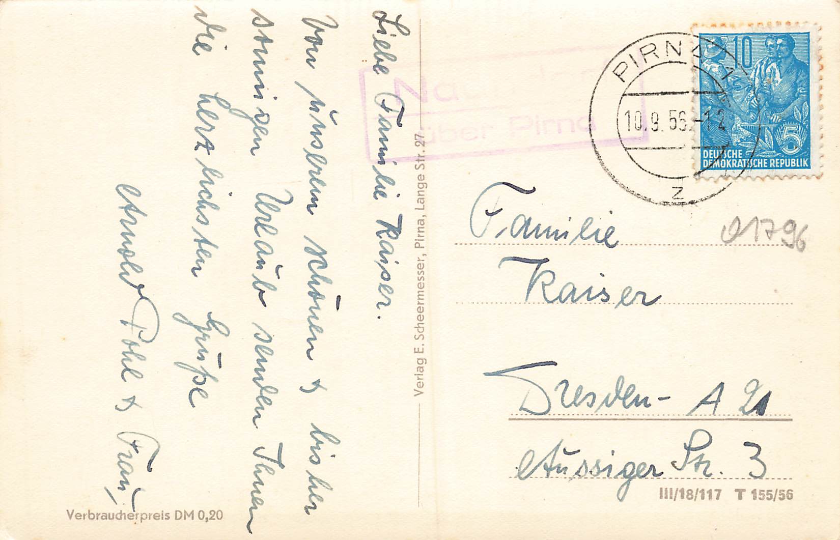 01796 Naundorf m. Bärenstein Landpoststempel Naundof über Pirna o 1955