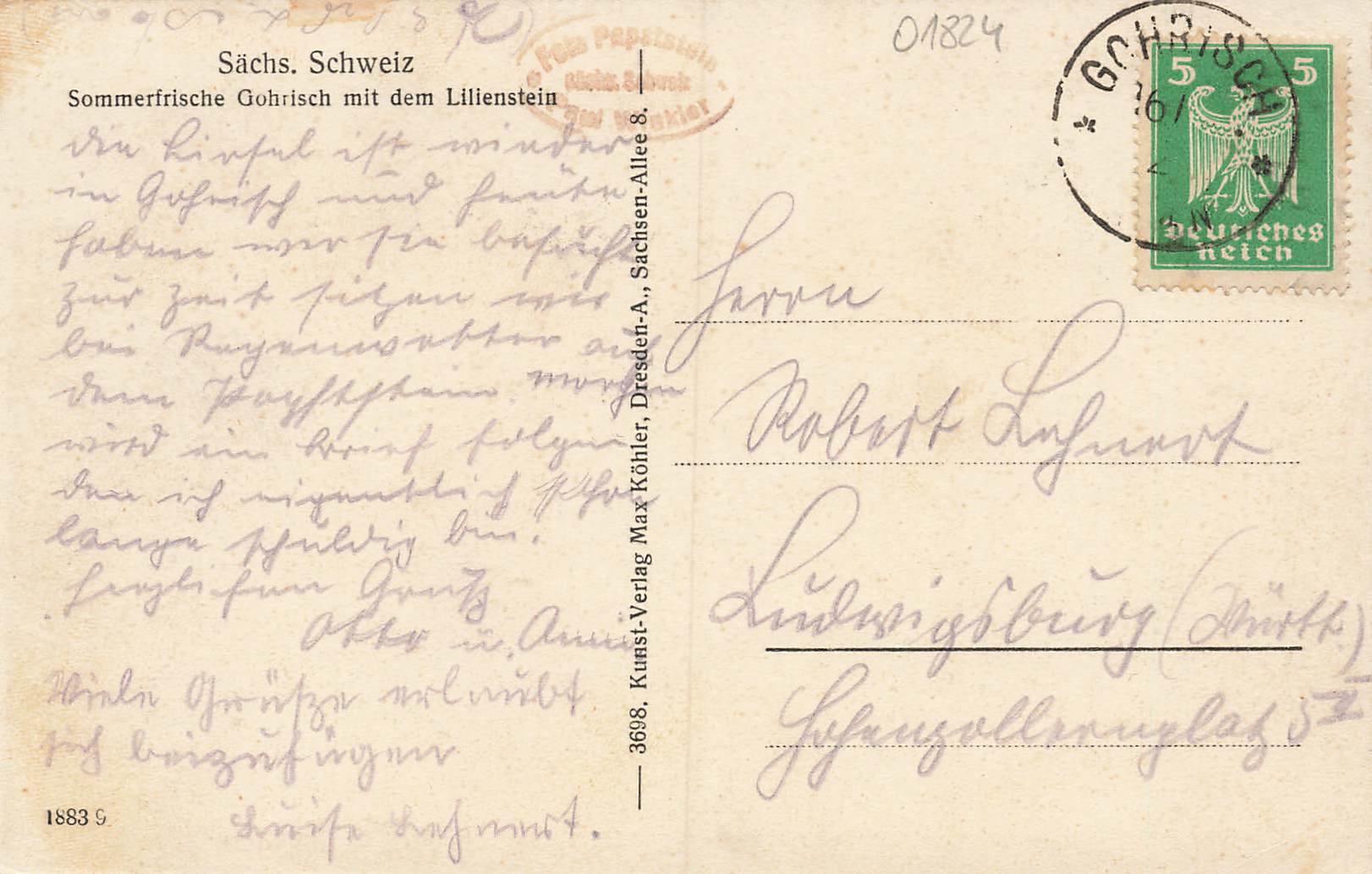 01824 Gohrisch mit Lilienstein Sächsische Schweiz o 1924