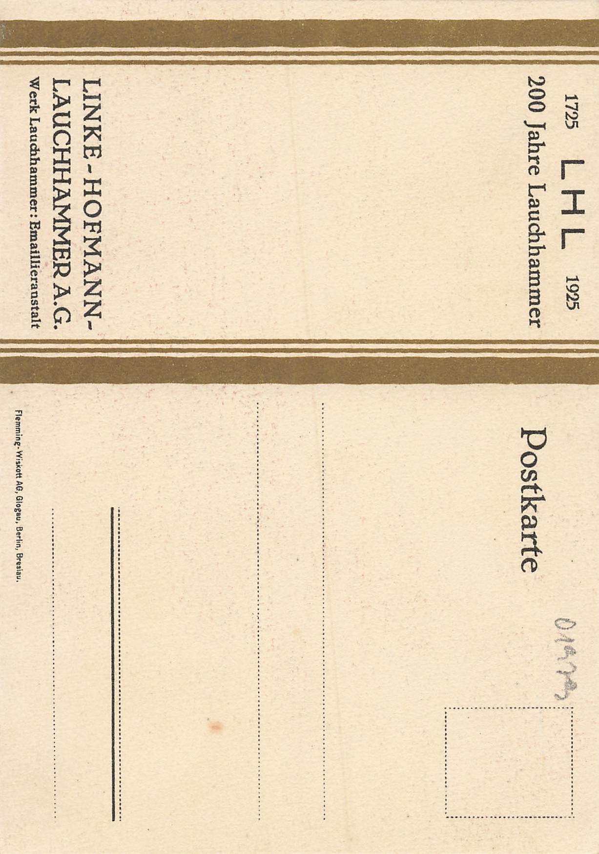 01979 Lauchhammer Linke-Hofmann A.G. 200 Jahre 1925 Künstlerkarte