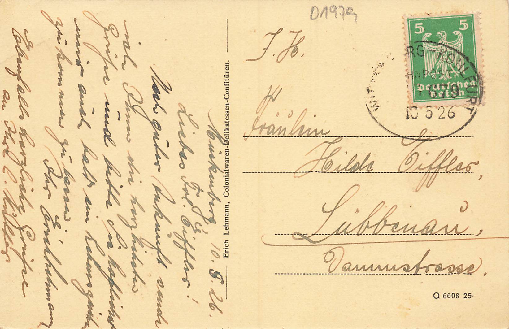 Bahnpost Wittenberg-Kohlfurt ZUG 679 o 1926
