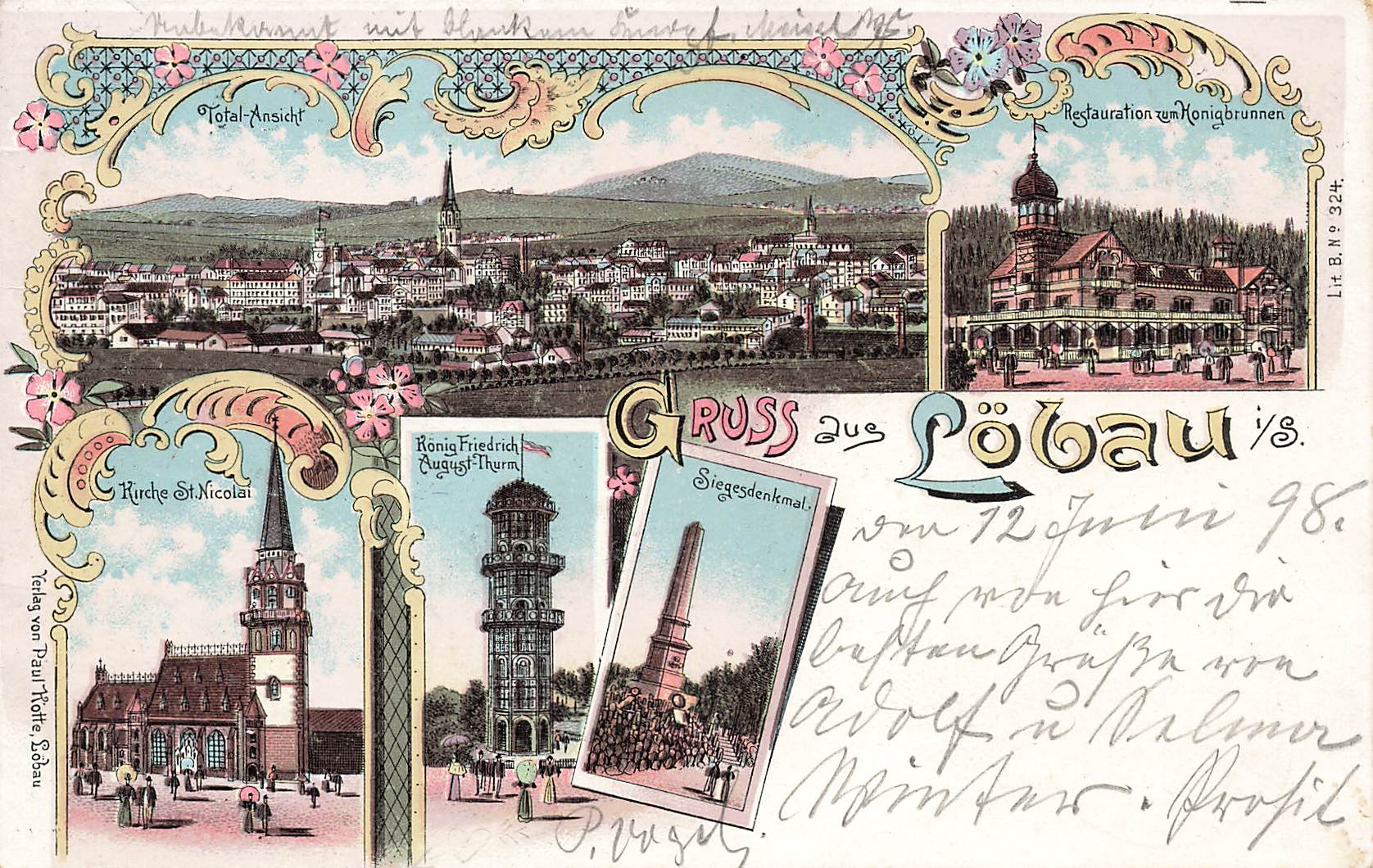 02708 Löbau Sachsen Restaurant zum Königbrunnen Litho o 1898