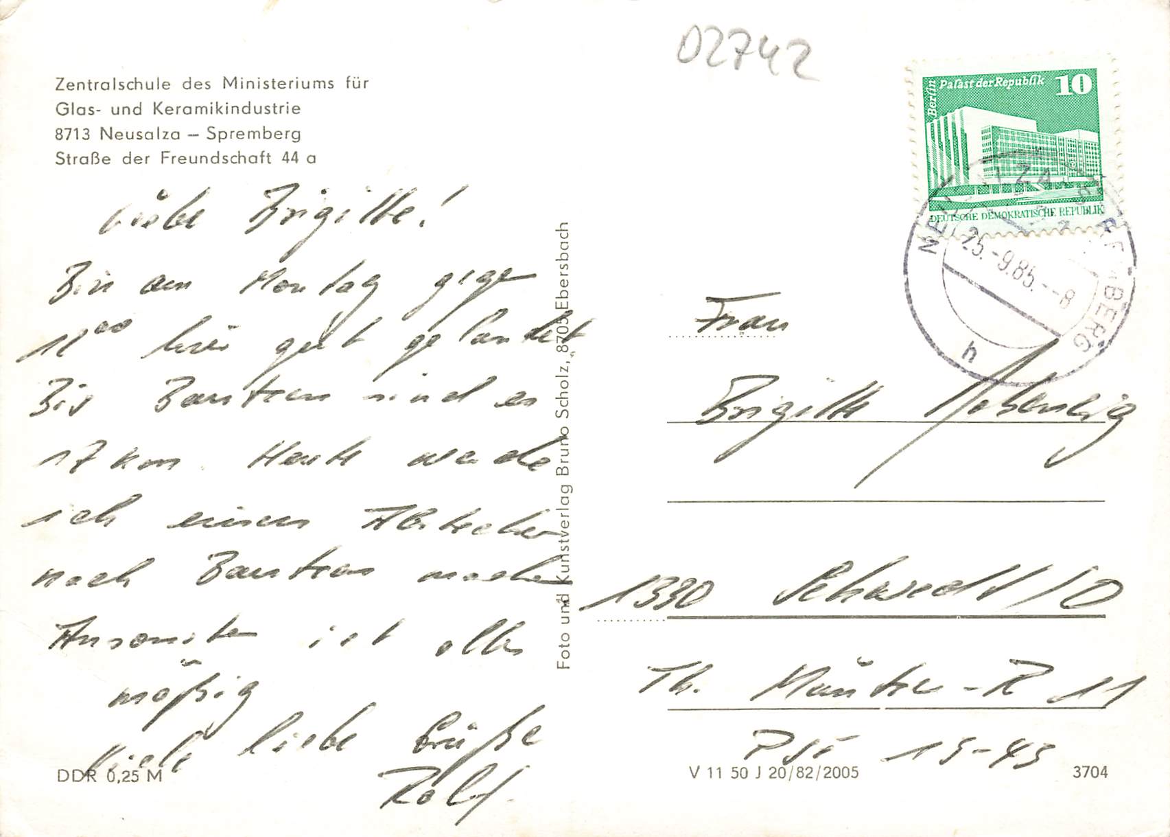 02742 Neusalza-Spremberg Zentralschule des Ministeriums für Glas und Keramikindustrie o 1985