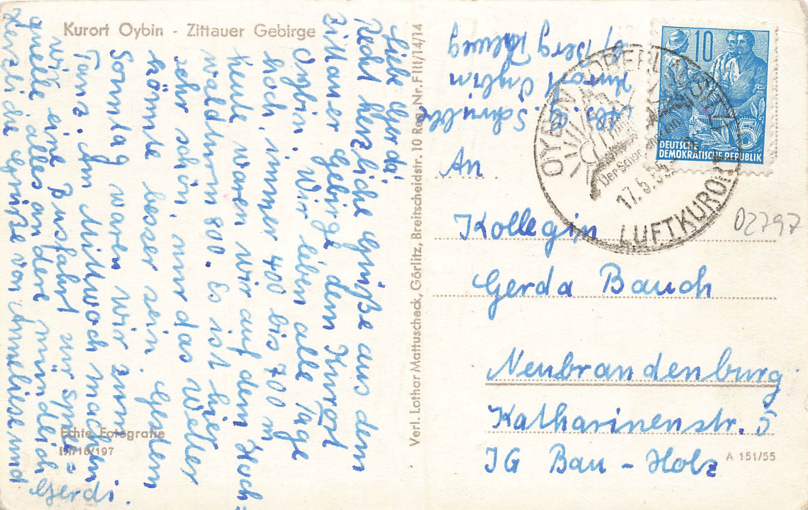 02797 Oybin Zittauer Gebirge Bergwirtschaft o 1955