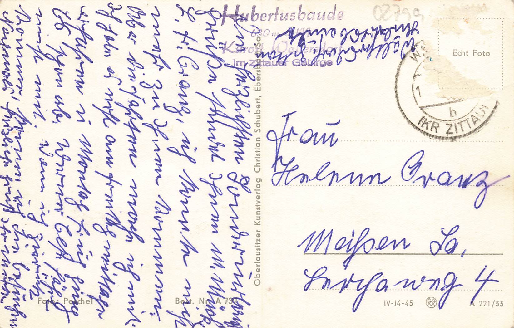 02799 Waltersdorf Oberlausitz Hubertusbaude mit Jonsberg o um 1955