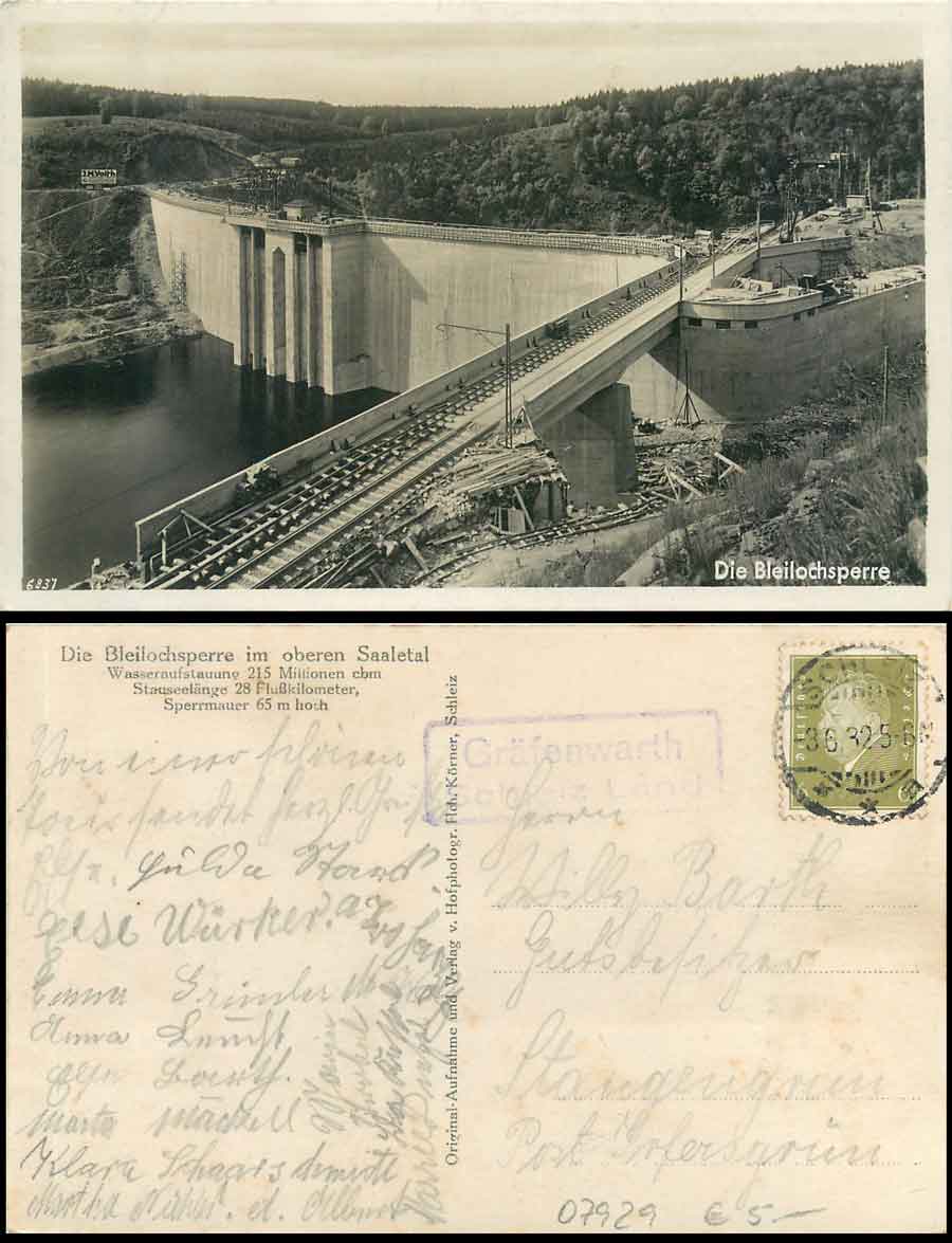 07929 Bleilochtalsperre im Bau Landpoststempel Gräfenwarth Schleiz Land o 3.6.1932