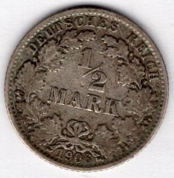 1/2 Mark 1906 J Deutsches Kaiserreich Silbermünze