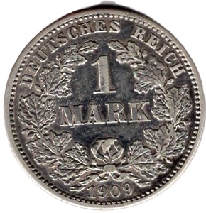 1 Mark 1909 J Deutsches Kaiserreich Silbermünze