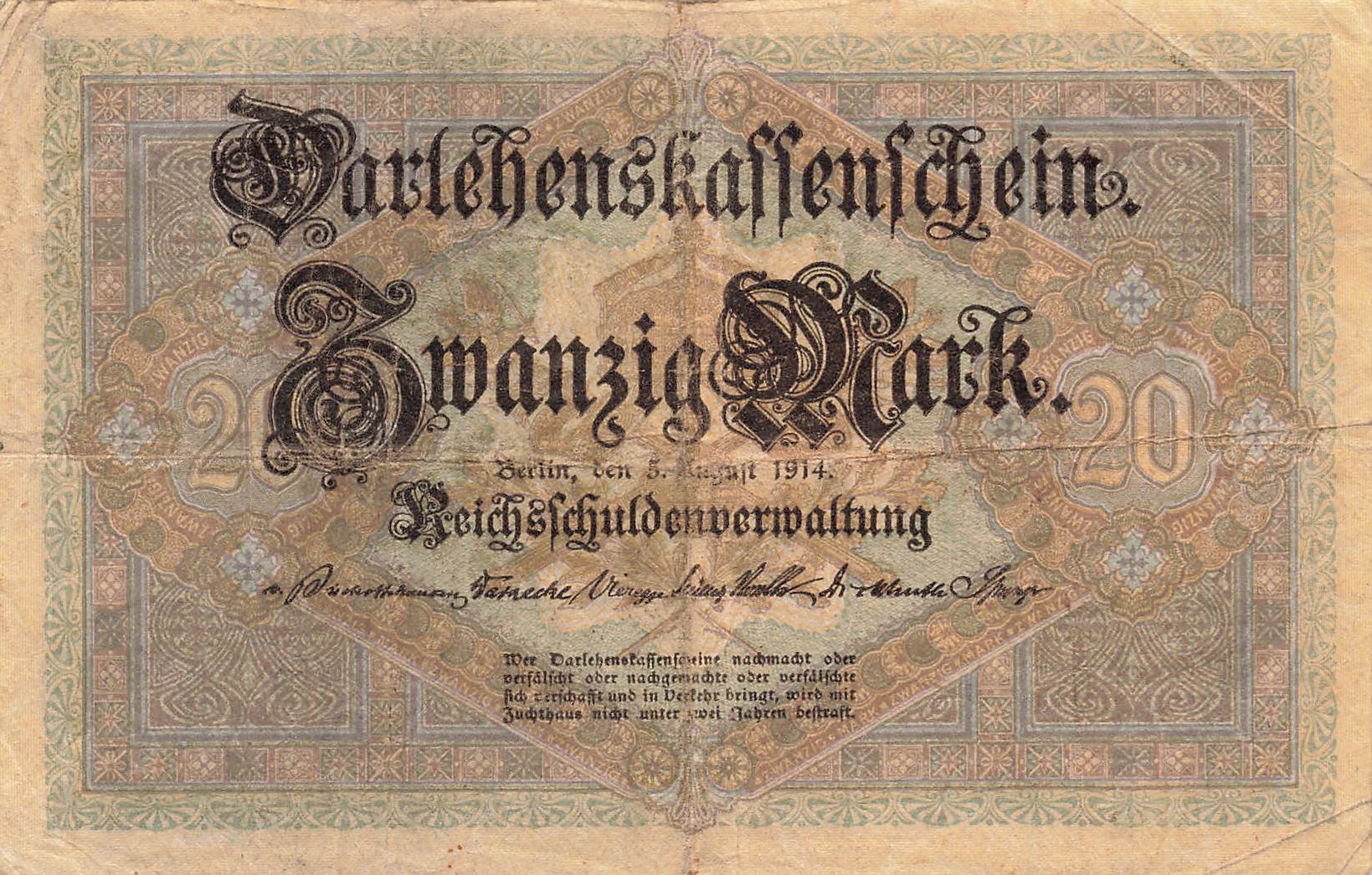 20 Mark Darlehenskassenschein 5. August 1914 RO49b DEU-55b