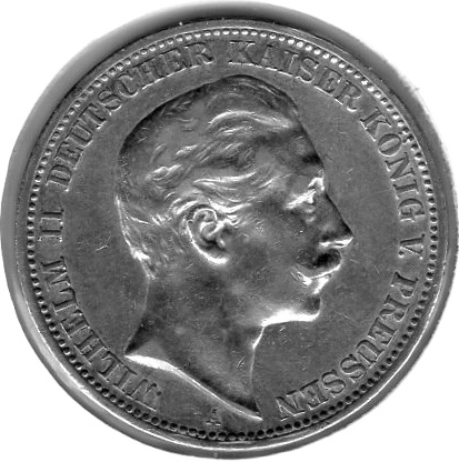 3 Mark PREUSSEN 1910 Wilhelm II Silbermünze