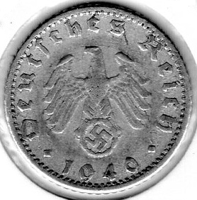 50 Reichspfennig 1940 E Drittes Reich mit Hakenkreuz