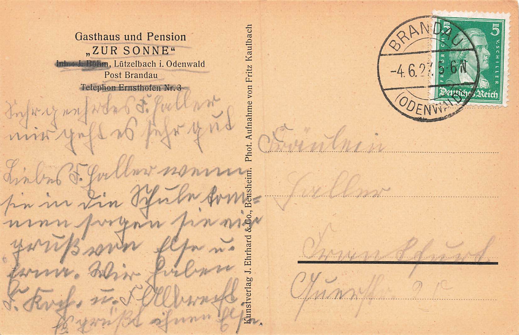 64750 Lützelbach Odenwald Ansichtskarte o 1927