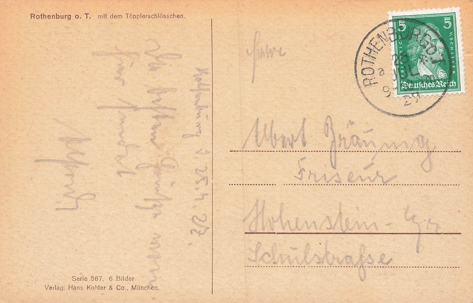 91541 Rothenburg Tauber Töpplerschlösschen Künstlerkarte Zillner o 1927