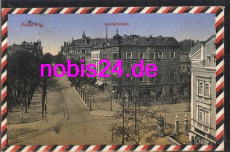 Augsburg Bahnhofstrasse Patriotika Karte o 29.8.1915