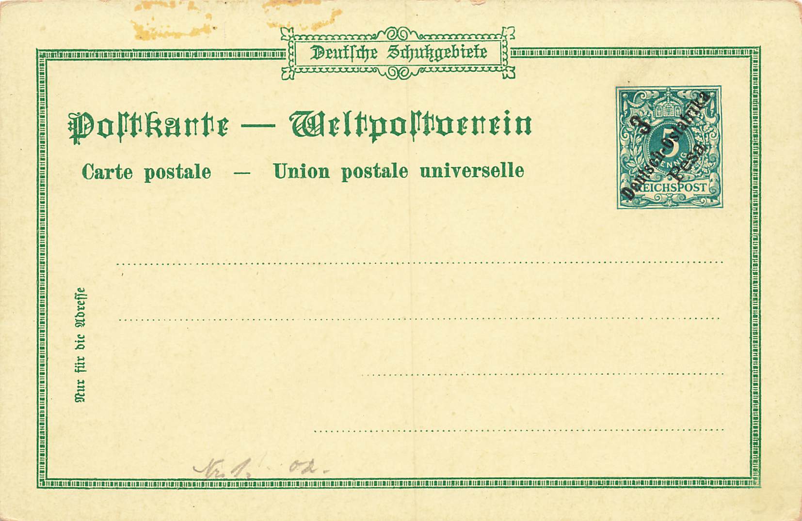 Bagamoyo Litho Privatganzsache 3 Pesa auf 5 Pfennig Krone Adler Deutsch Ostafrika * um 1890
