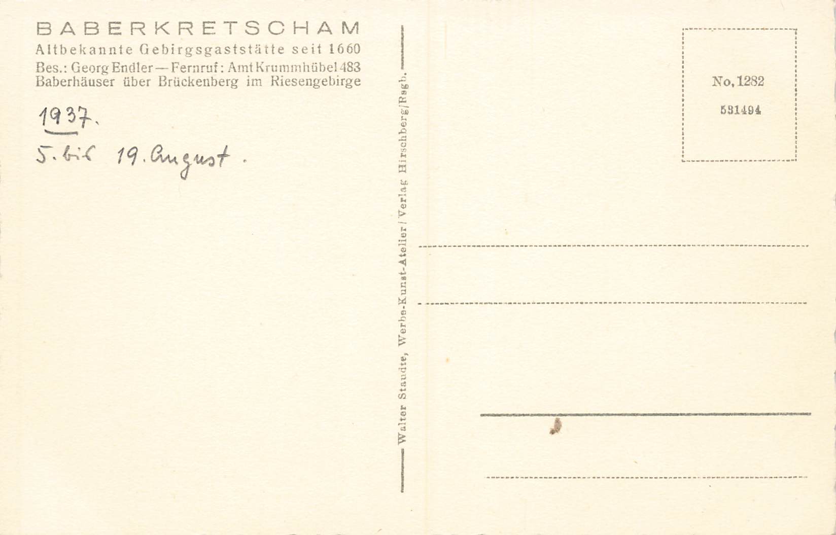 Barberhäuser Riesengebirge Barberkretscham Schlesien Borowice * 1937