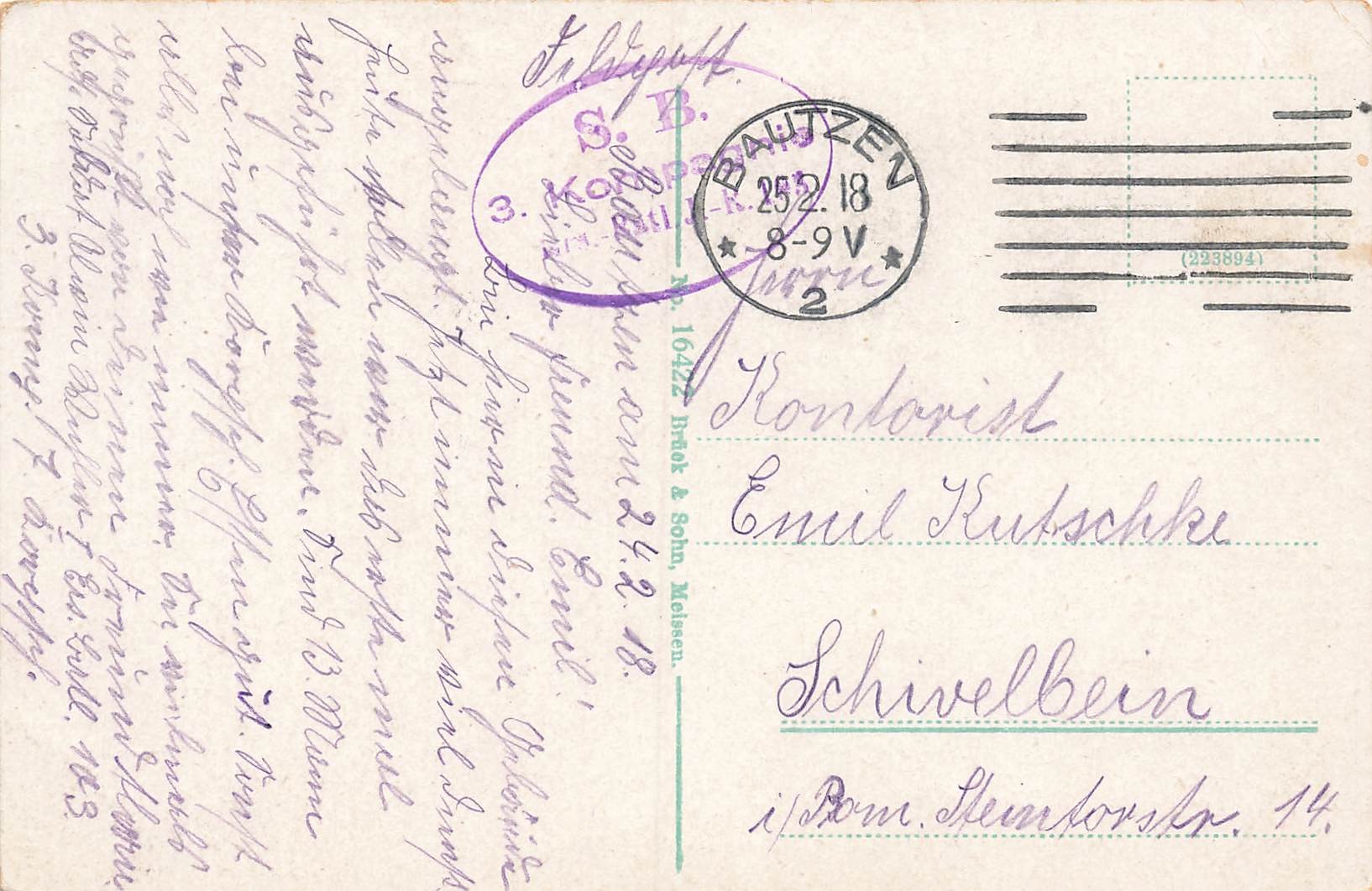 Bautzen Wendische Gasse alte Kaserne und Pulverturm Feldpost 3. Kompagnie o 1918