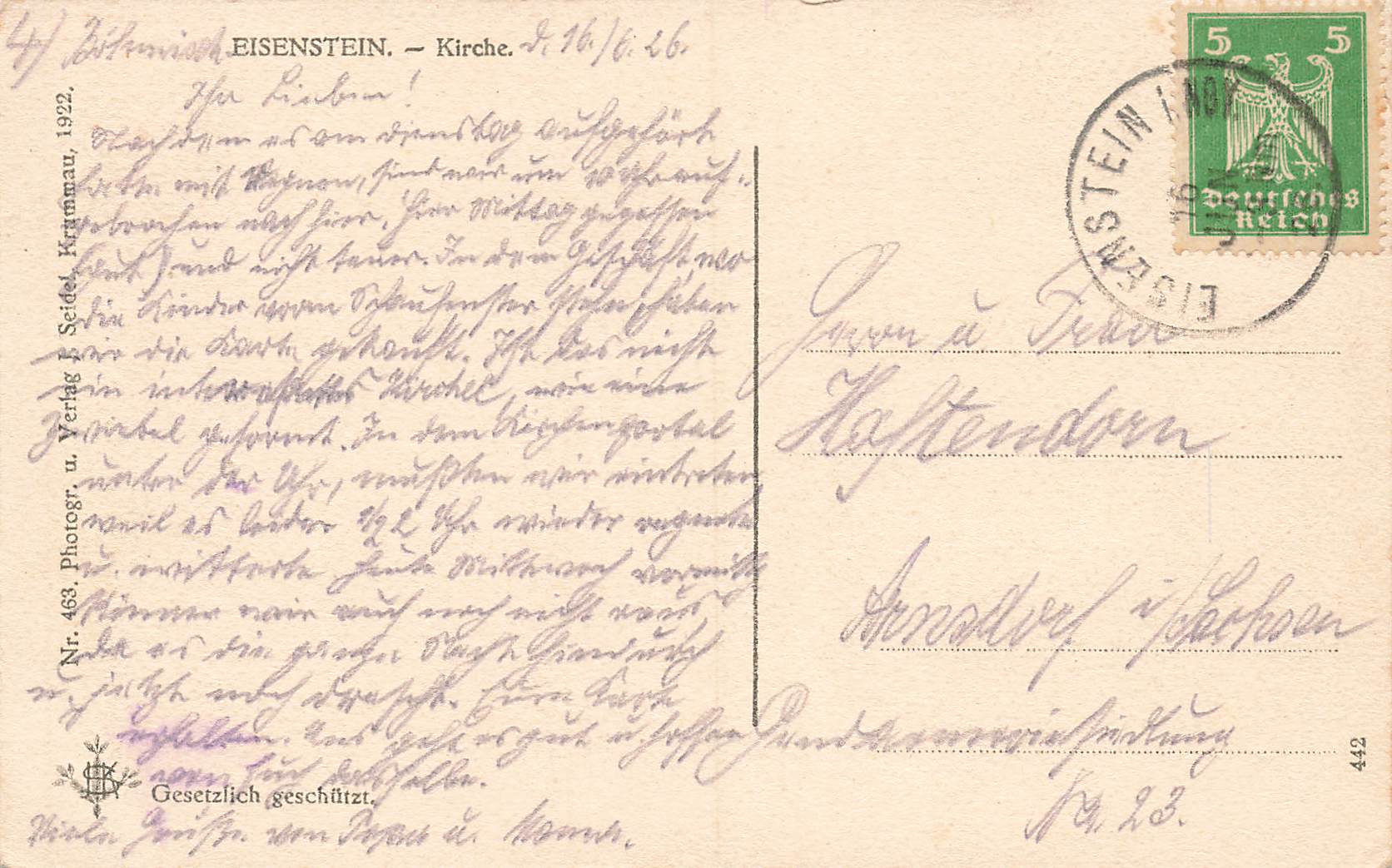 Böhmisch Eisenstein Kirche Sudetengua Železná Ruda o 1926