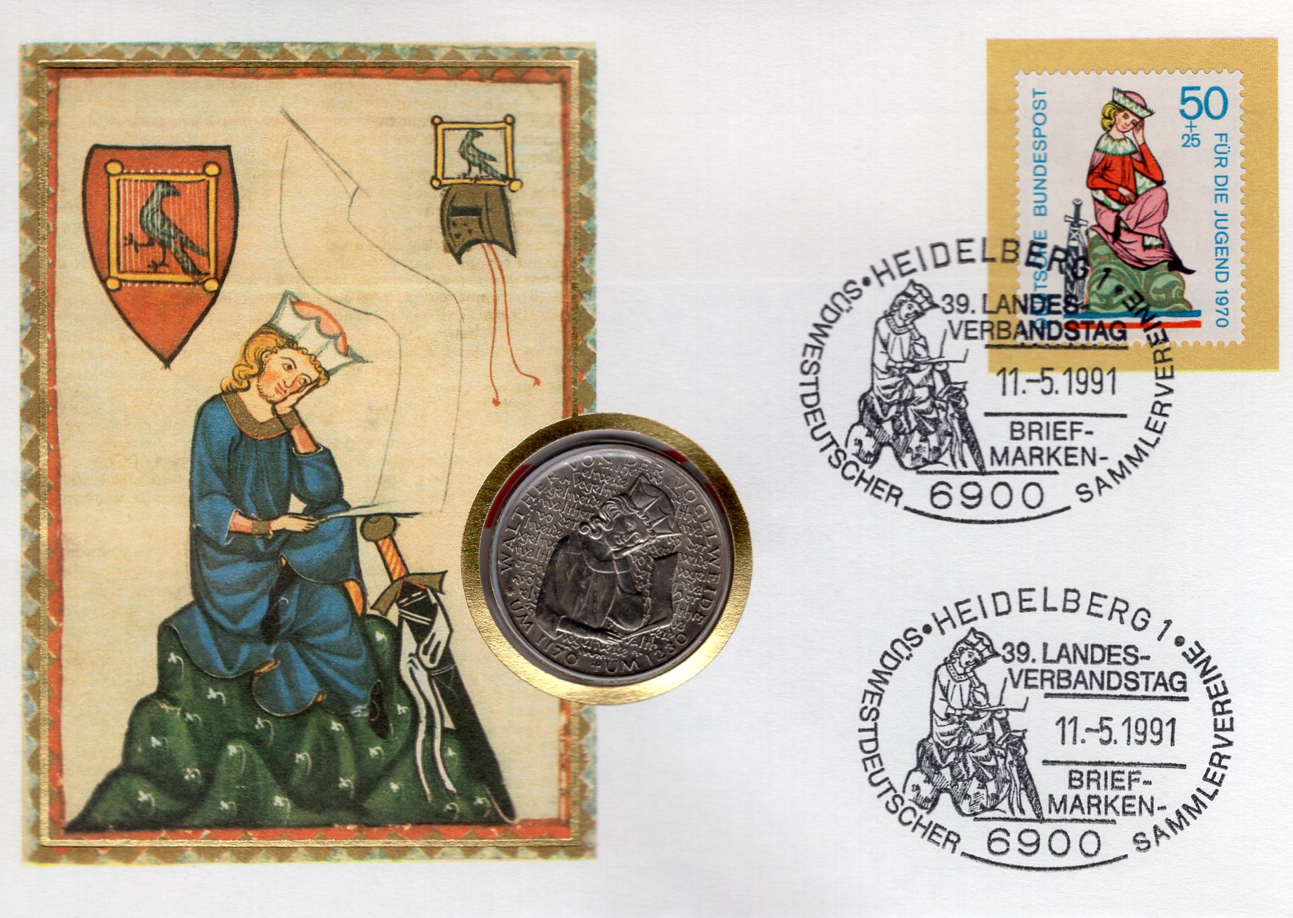 BRD Numisbrief mit 5 DM Walter von der Vogelweide 1991