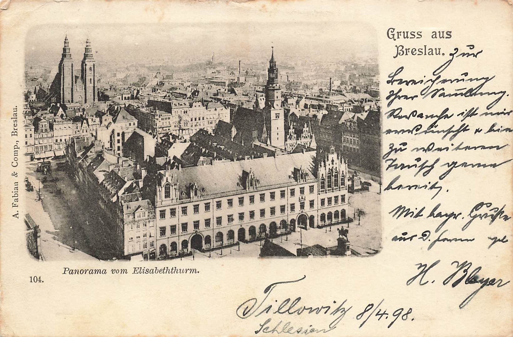Breslau Schlesien Wrocław Bahnpoststempel Neisse-Oppeln Zug 233 o 1898 Briefträgerstempel München 232