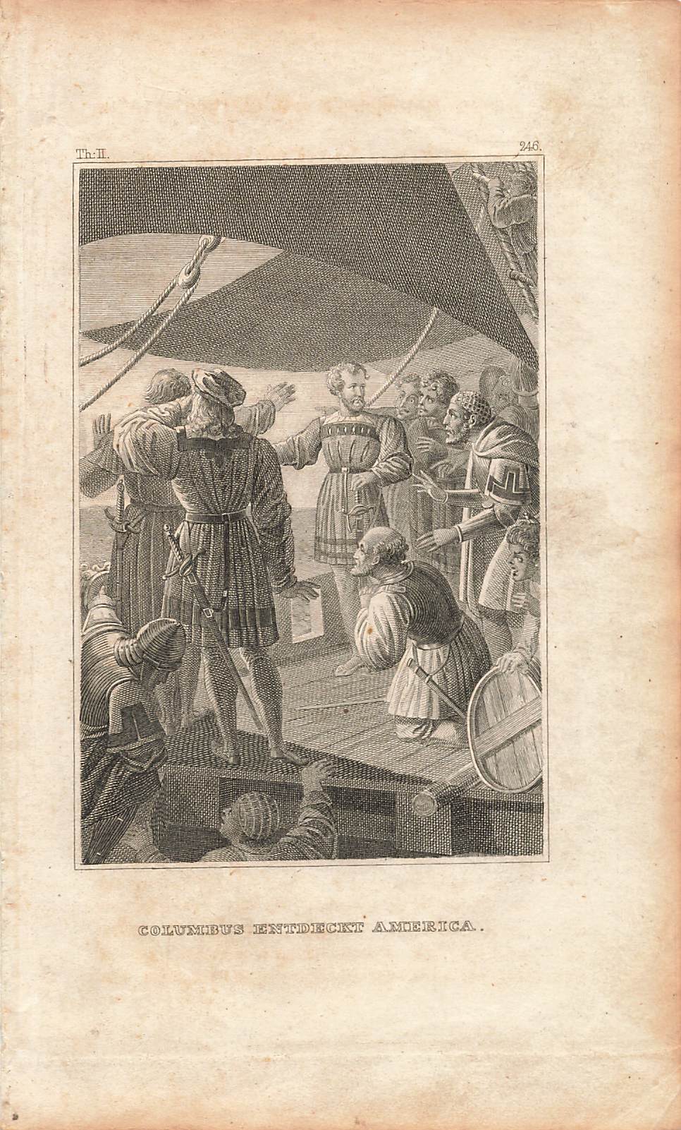 Columbus entdeckt Amerika original Stahlstich um 1830