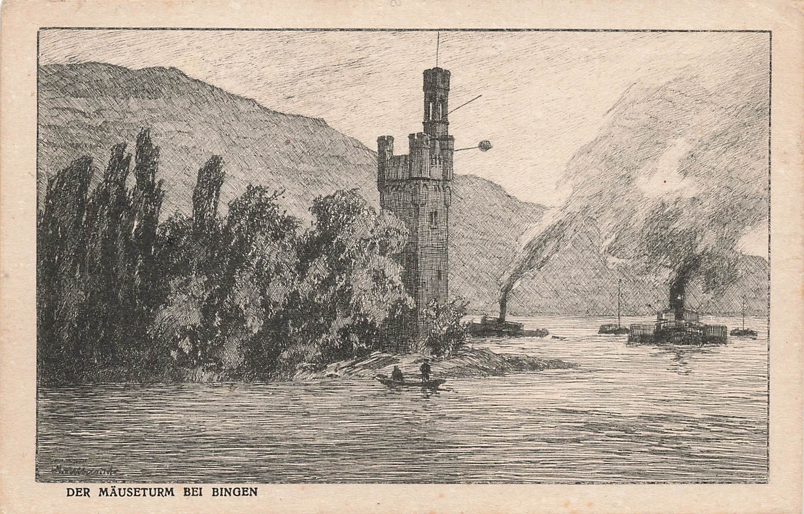 Der Rhein No. 8 Mäuseturm bei Bingen Künstlerkarte Otto Ubbelohde Mandt-Verlag * um 1920