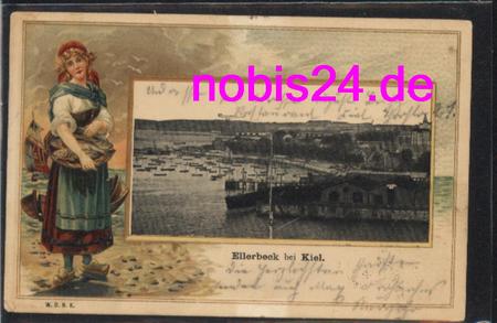 Ellerbeck bei Kiel Hafenansicht Prägekarte 4.1.1906