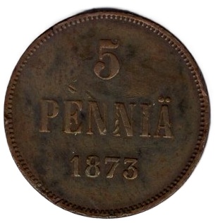 Finnland 5 Penniä 1875 Alexander II. von Russland