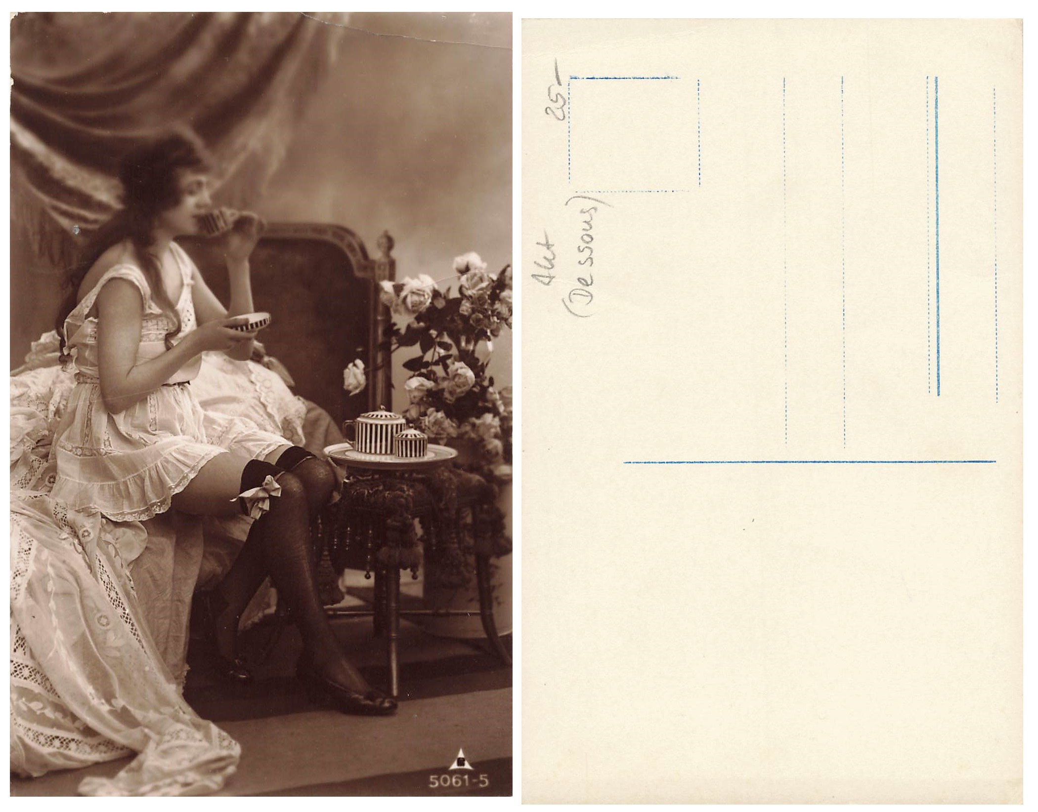 Frau auf Bett Dessous Serienkarte 5061-5 *ca. 1920