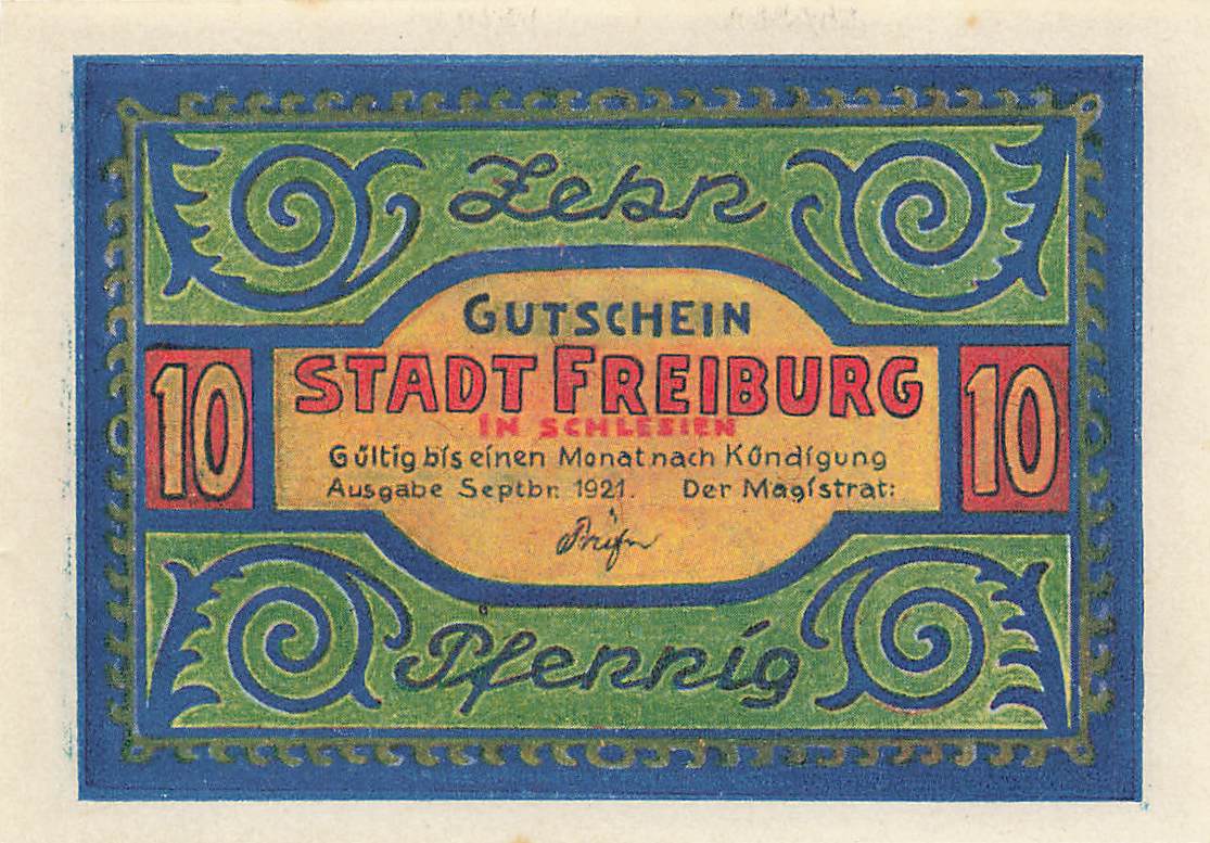 Freiburg Uhrenstadt Schlesien Świebodzice Notgeldschein 1921