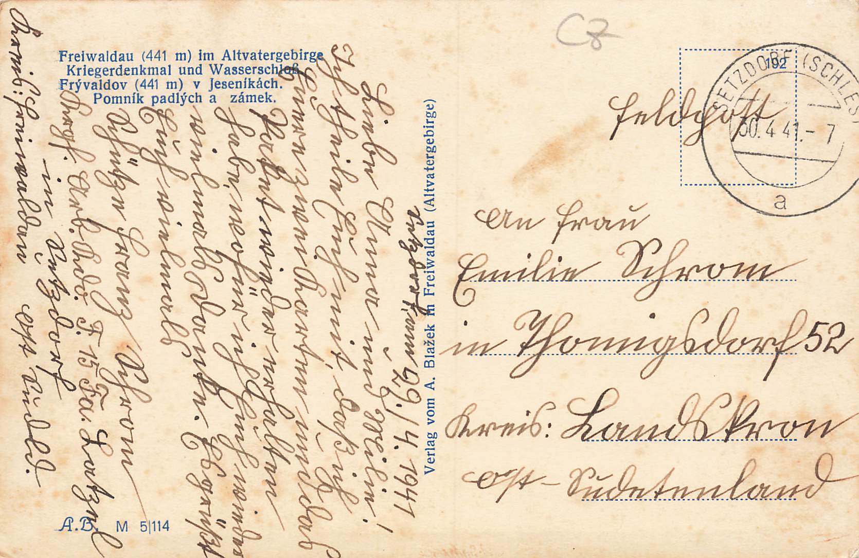 Freiwaldau Kriegerdenkmal Sudetengau Jeseník o 1941