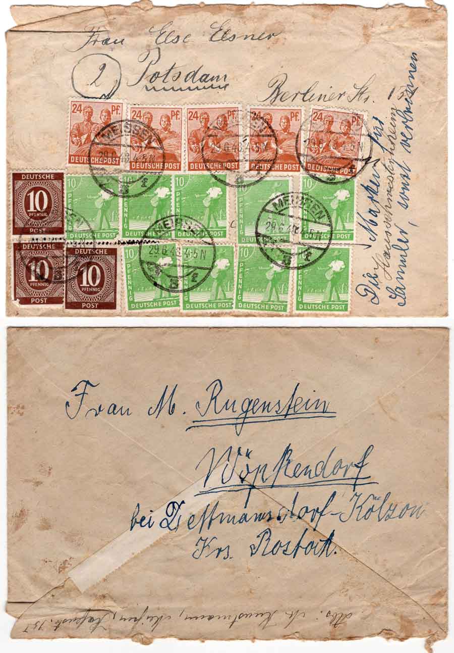 Gemeinschaftsausgaben Zehnfachfrankatur auf Brief von Meissen 29.6.1948 nach Potsdam