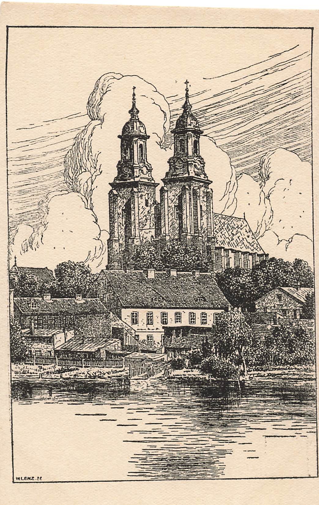 Gnesen Kirche Künstlerkarte W. Lenz Gniezno * um 1930
