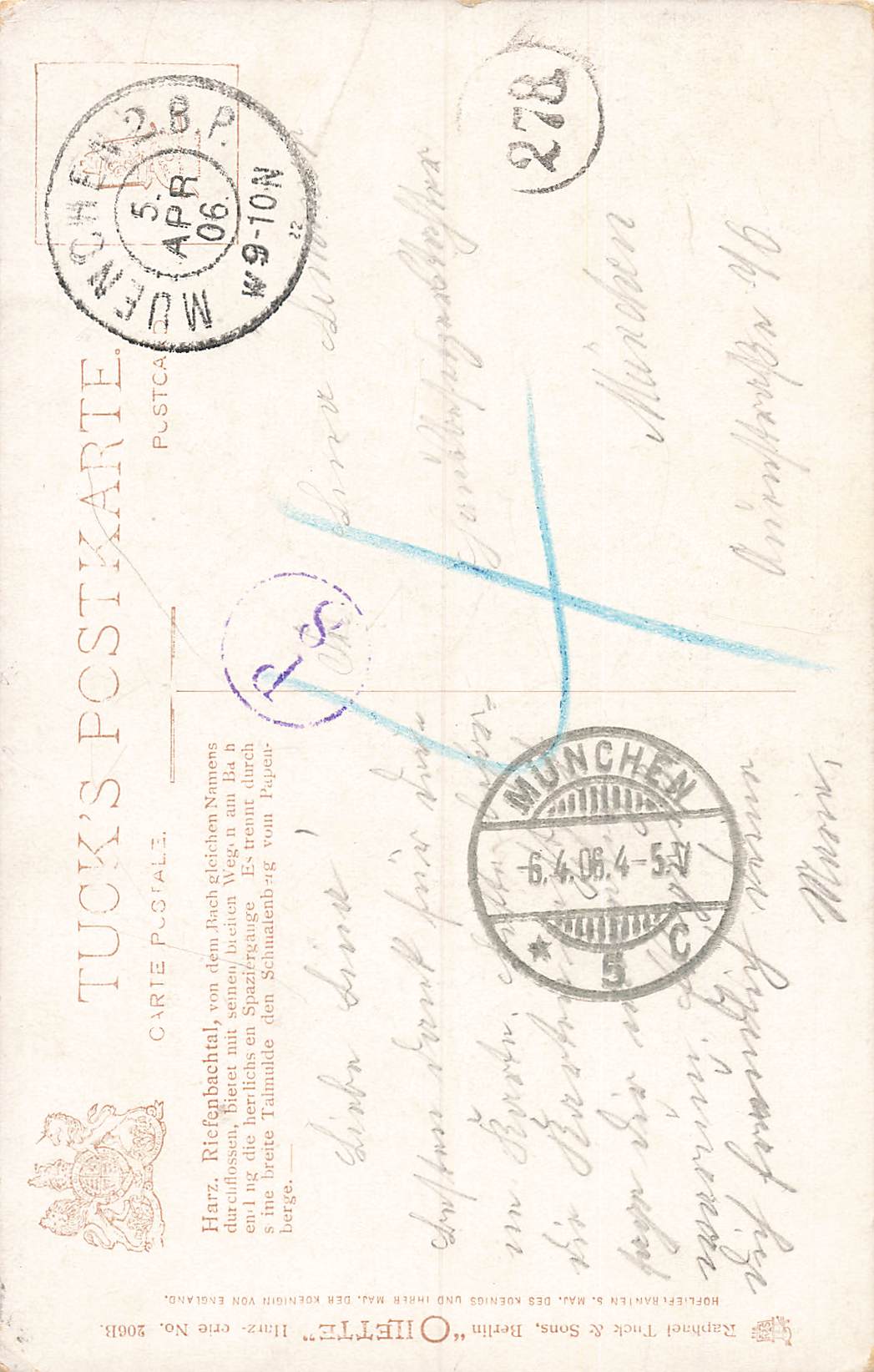 Riefenbachthal Harz Künstlerkarte Tucks Oilette o 1906 nach München Briefträgerstempel 278