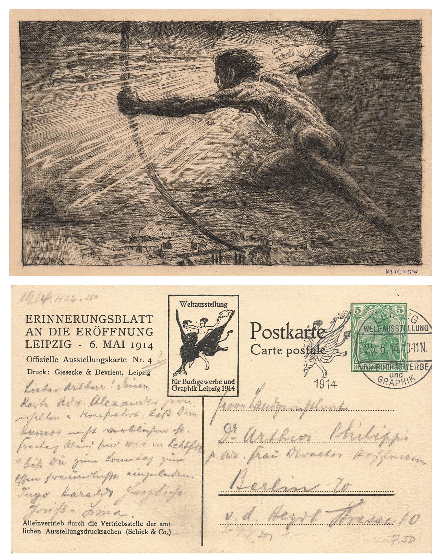 Heroux Bruno Leipzig Weltausstellung für Buchgewerbe Privatganzsache PP27C44 Sonderstempel 25.6.1914 Offizielle Ansichtskarte No.4