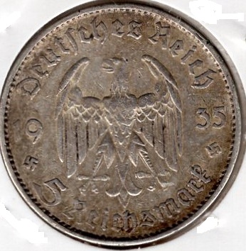 Jäger 0357 - 5 Reichsmark 1935 F Garnisonskirche Silbermünze Deutsches Reich