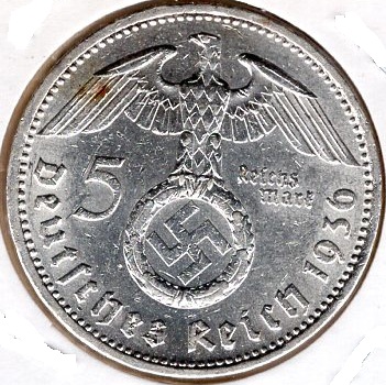Jäger 0367 - 5 Reichsmark 1936 A Hindenburg Hakenkreuz Silbermünze