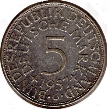 Jäger 0387 - 5 D-Mark 1957 G BRD