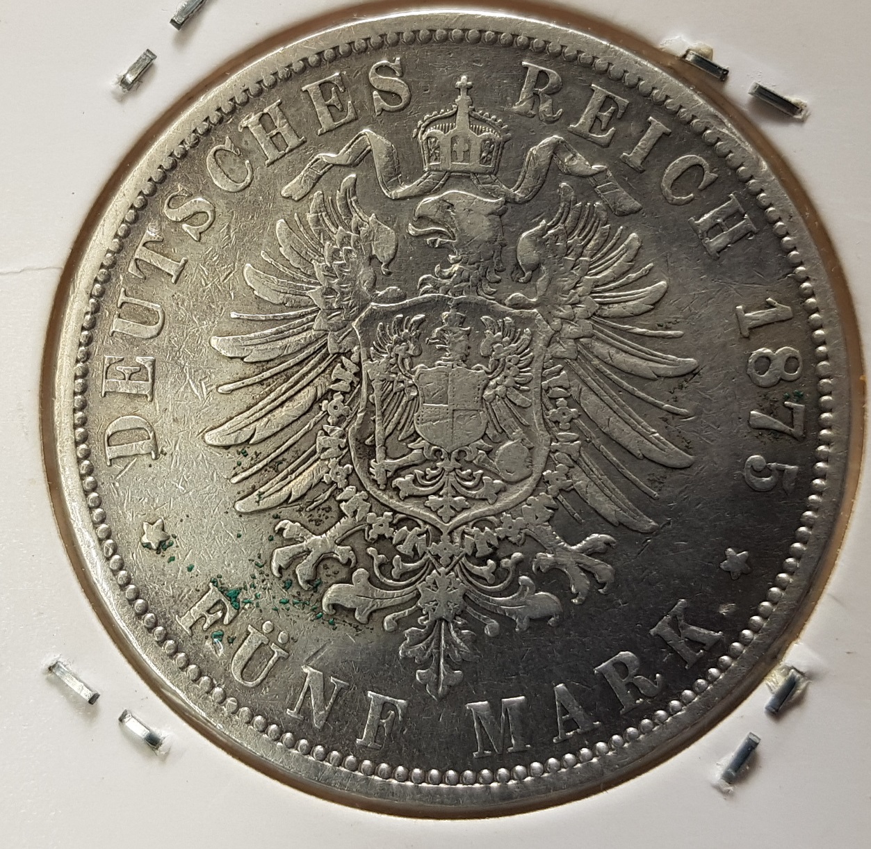 Jäger 097 - 5 Mark PREUSSEN 1875 B Wilhelm I. Kaiserreich Silbermünze