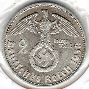 Jäger 366 - 2 Reichsmark 1938 D Hindenburg Silbermünze Deutsches Reich