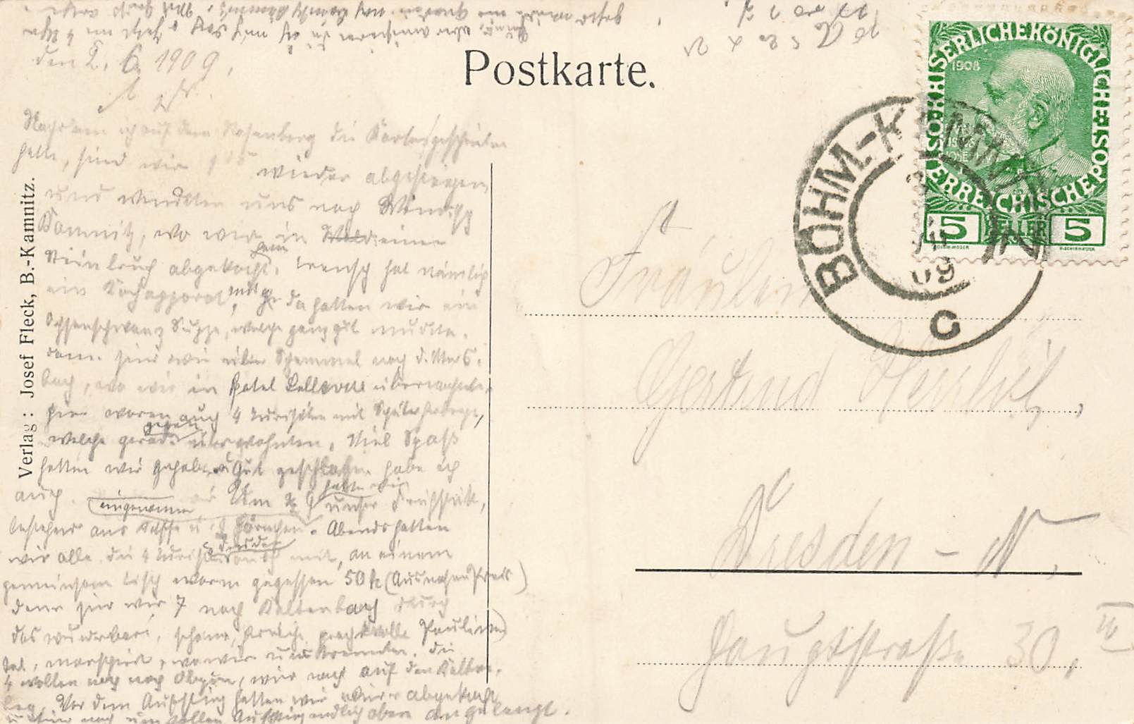 Kaltenherberge Böhmisch Kamnitz Česká Kamenice o 1909