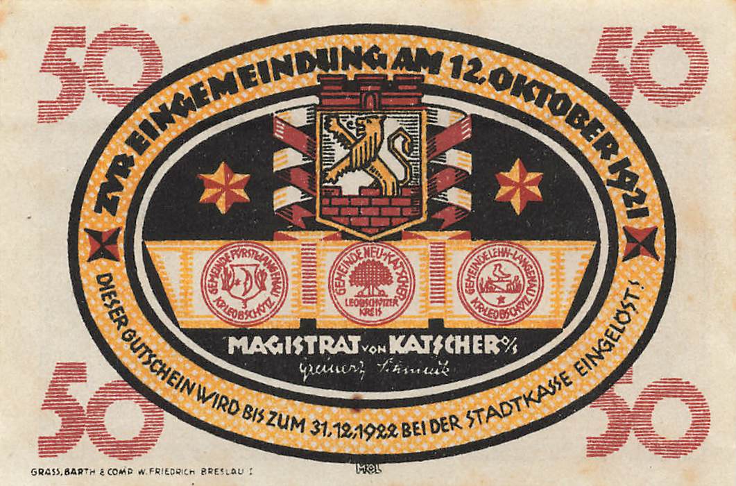 Katscher Oberschlesien Notgeldschein Kietrz 1921